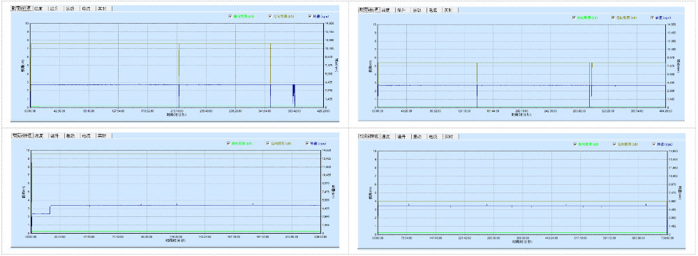 對(duì)整個(gè)試驗(yàn)工裝的振動(dòng)情況進(jìn)行記錄,對(duì)每一時(shí)刻的振動(dòng)值進(jìn)行記錄,在整個(gè)測(cè)試中的振動(dòng)趨勢(shì)變化可以全程跟蹤軸承的狀態(tài),是否出現(xiàn)異常以及異常的趨勢(shì)變化,分析軸承在測(cè)試中哪一階段開始出現(xiàn)異常,是否出現(xiàn)打滑等狀況;
